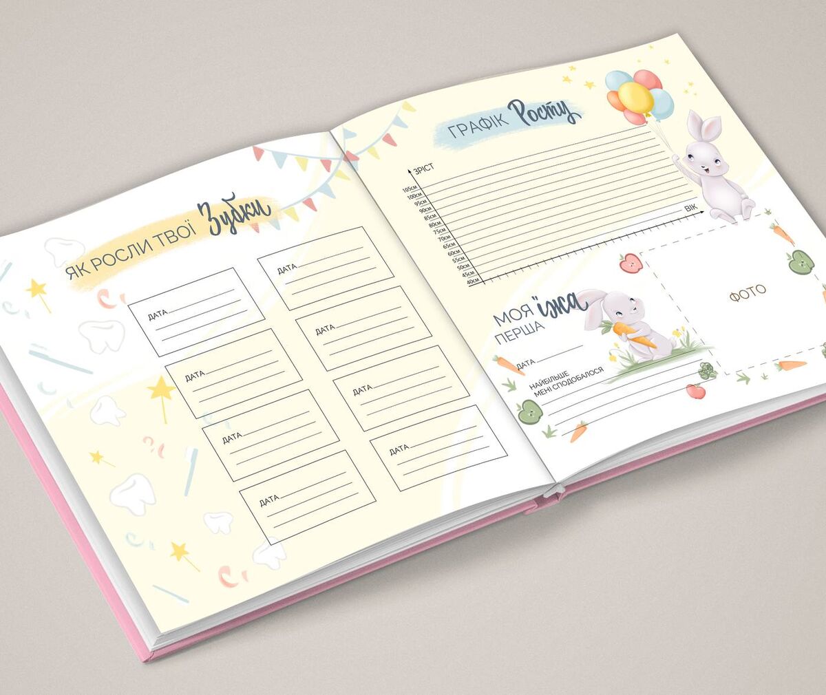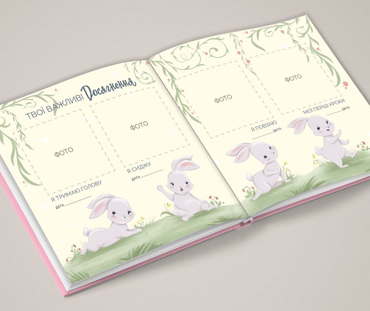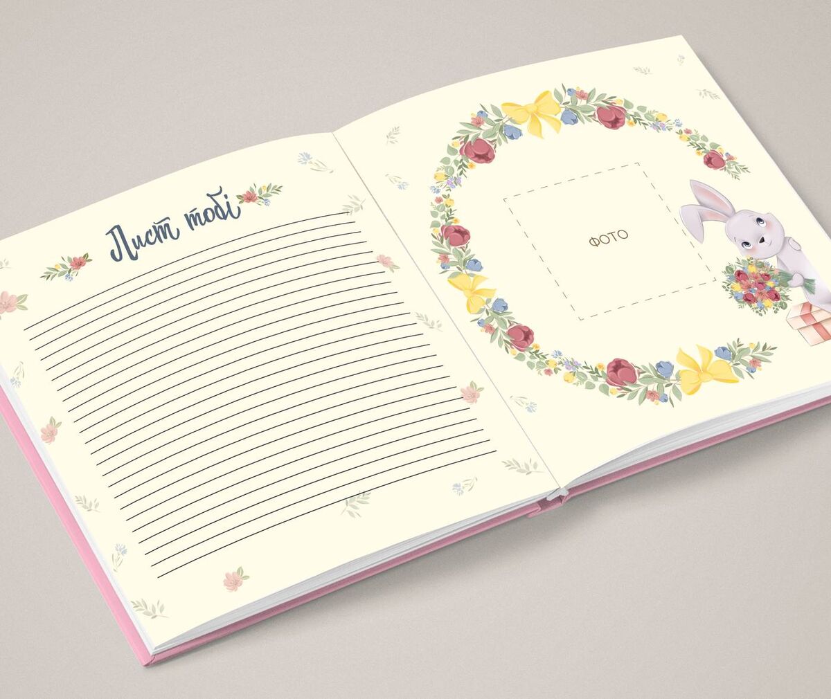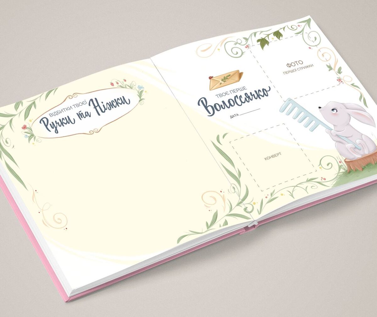 Ніжне малятко спить на хмаринці у рамці з акварельних півоній, квітів та різнокольорових пір'їнок. Ідеальний подарунок на народження дитини, хрестини або перший день народження. Ми додаємо ім'я малюка та всі важливі деталі: дату народження, час, вагу, зріст. Кожен альбом — це історія, яка зберігатиметься роками.